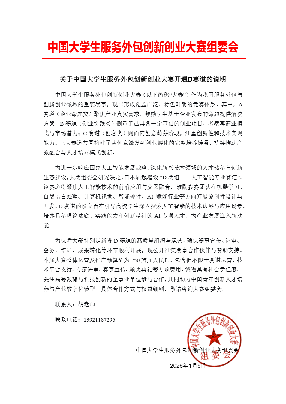 关于中国大学生服务外包创新创业大赛开通D赛道的说明